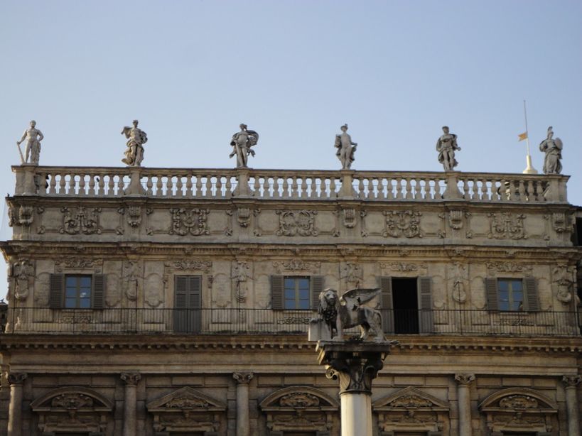 The Winged Lion. At Piazza delle Erbe, Verona, Italy