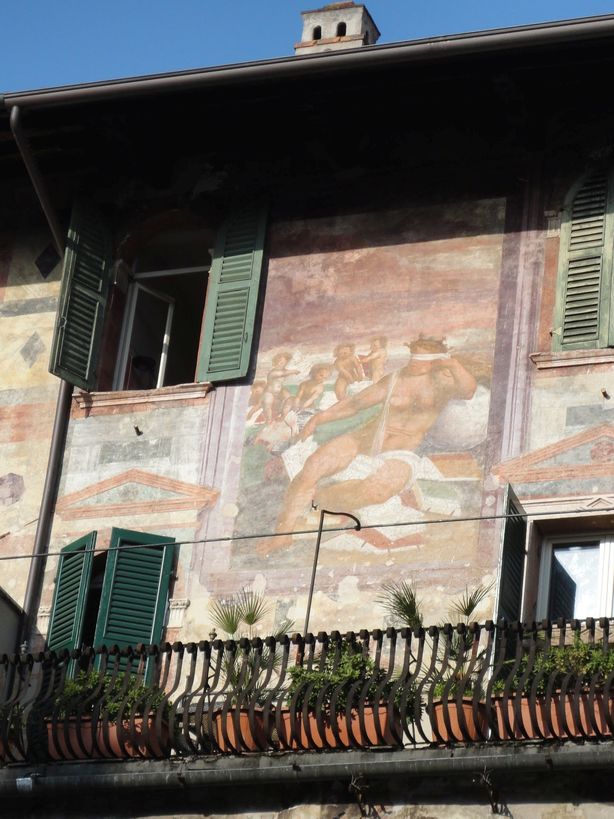 Beautiful frescoes. At Piazza delle Erbe, Verona, Italy