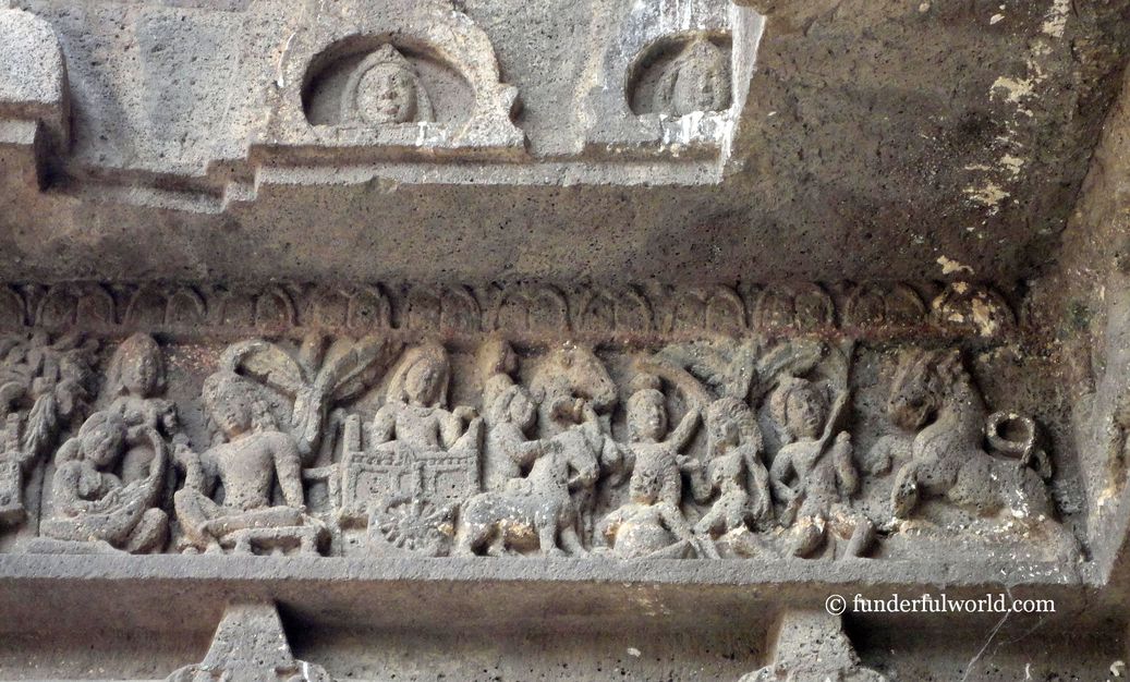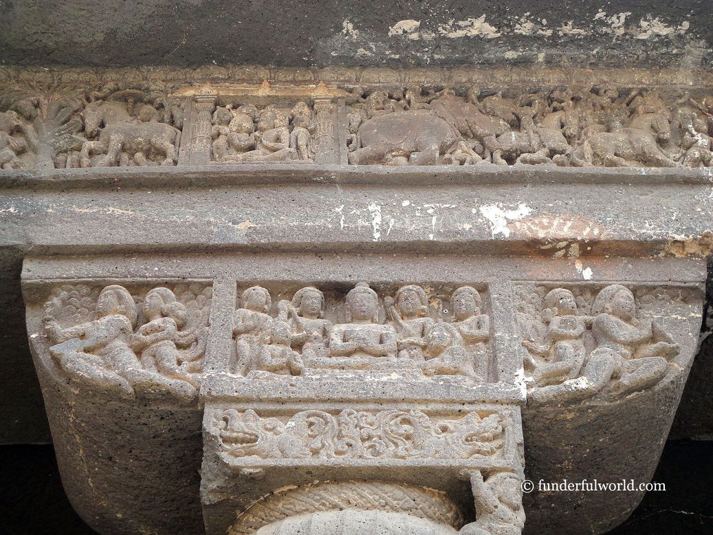 Exquisite work in stone. Ajanta Caves, Maharashtra, India.