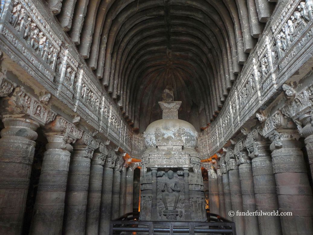 Architectural marvel. Cave 21, Ajanta Caves, India.