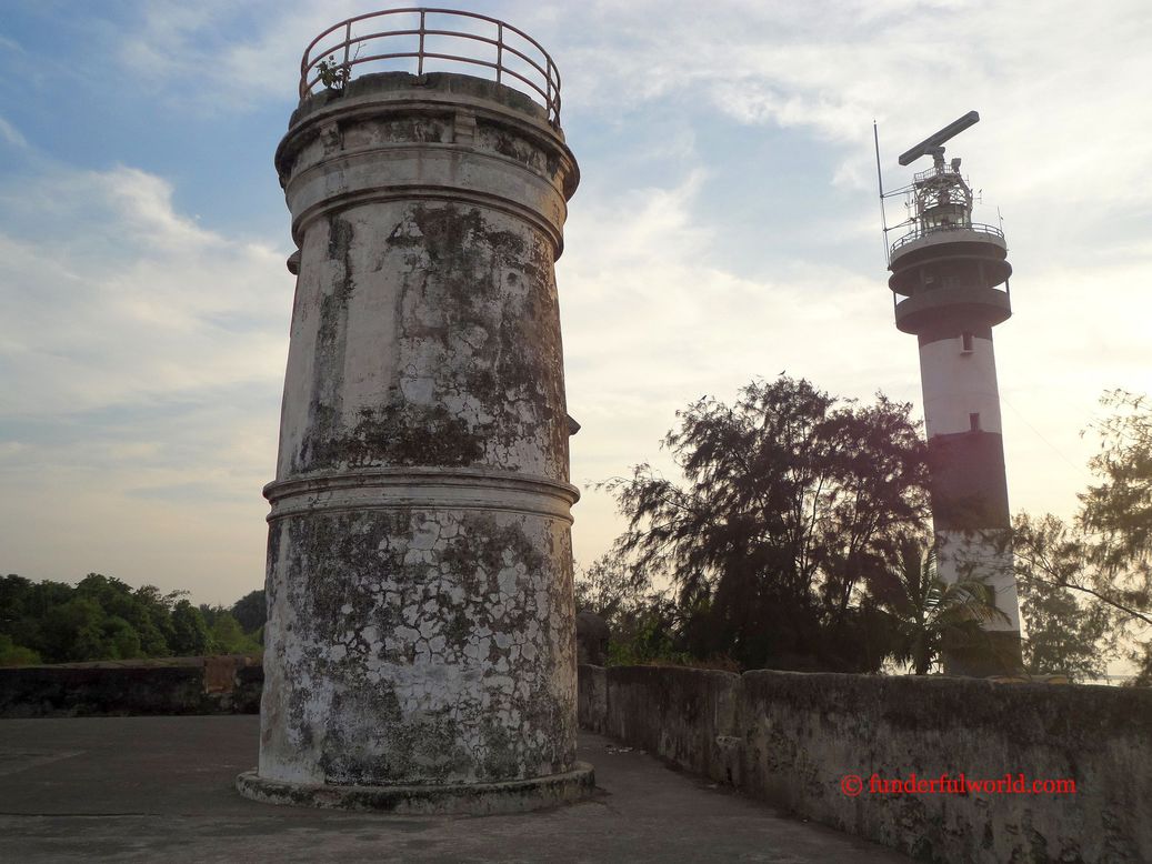 The old and the new. Lighthouses at Moti Daman, India.