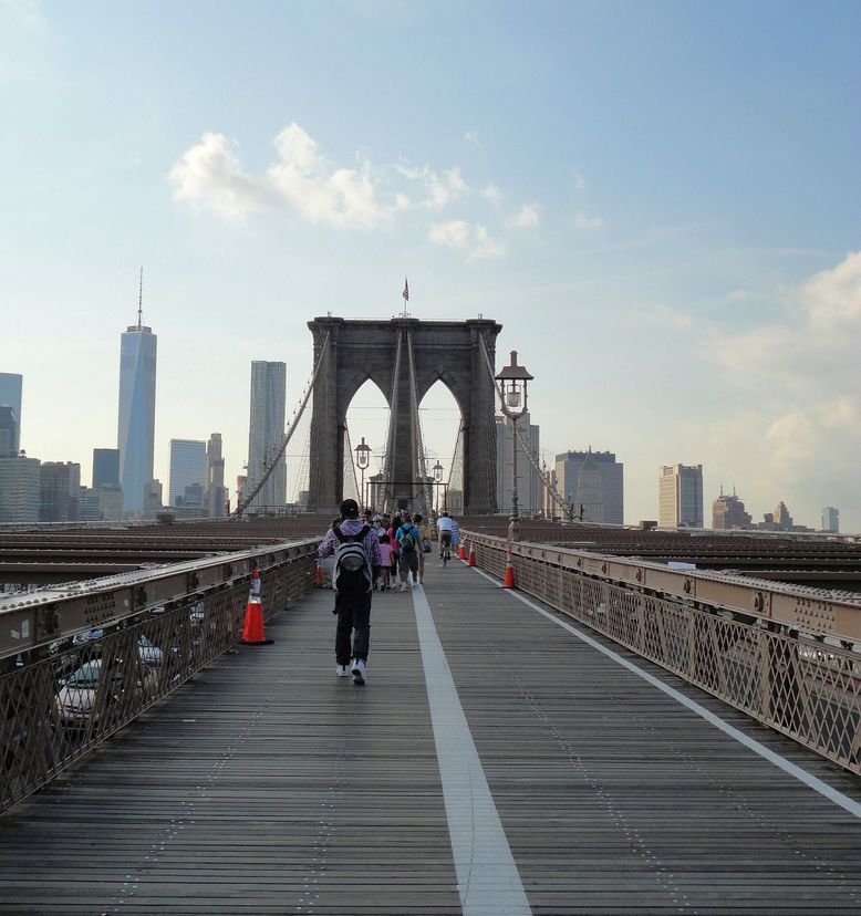 As we crossed the East River from Brooklyn to Manhattan, cars zipped along below us, residents hurried along, and tourists (like us!) stopped every so often to admire the views of Manhattan, the distant Statue of Liberty, and the arches and cables of the Brooklyn Bridge.