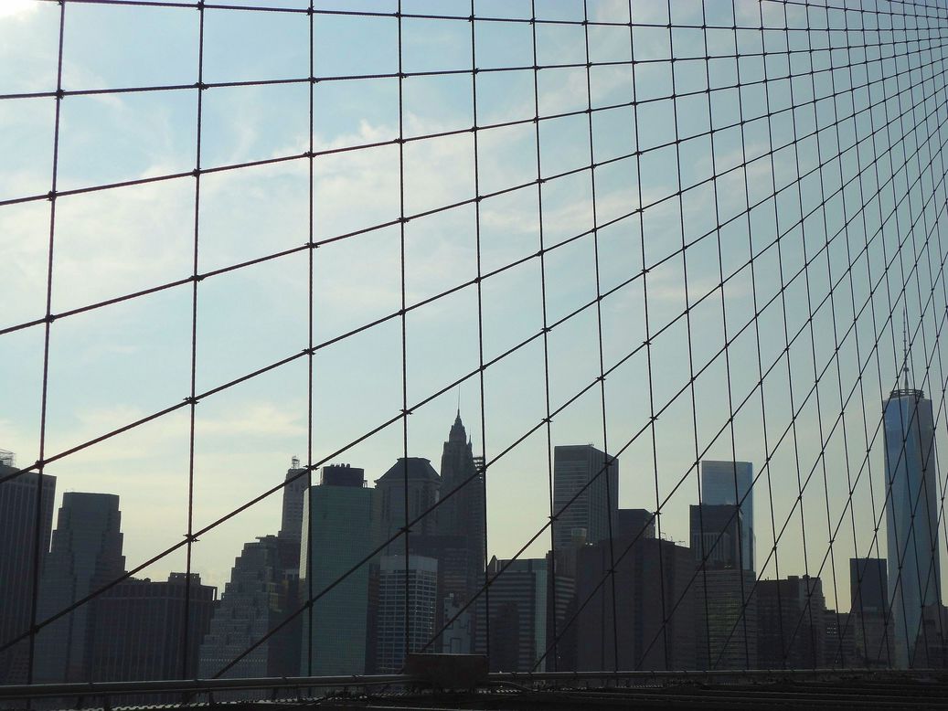 Manhattan from the Brooklyn Bridge. NYC, USA