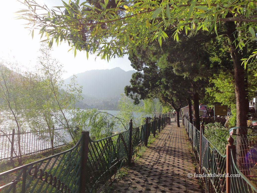 One of the nicest walking trails in Nainital is the Thandi Sadak. A narrow tree-lined path, flanked by a hill on one side and the lake on the other, this street gets its name from the “coolness” it exudes. So don’t wait or hesitate. Pull on your walking shoes and set off on the trail. En route, we halted at one of the “cutest” temples I’ve ever seen – the Pashan Devi temple, which is carved from stone . A few schoolkids returning home stopped for a while to pay their respects to the goddess. And then, everyone continued on their way. No traffic, no noise, just birdsong and nature. Ah, for the love of quiet walking trails!