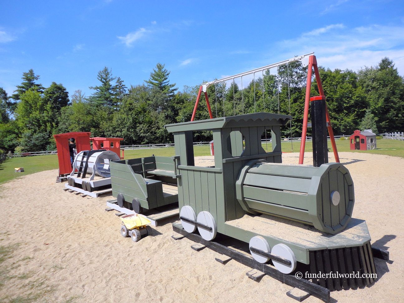 The welcome sign at the Hobo Jungle playground beckoned warmly. Junior didn’t stop to read it. He rushed into the play area and was soon having a great deal of fun on all the wonderful equipment there. When it was time for the train ride on the Hobo Railroad, we hurried and entered a compartment. Settling down near the big windows, we waited for the journey to unfold. The train made its way through a picturesque route along the Pemigewassett River. The horn tooted and the bell rang as we left Hobo Junction, crossed a bridge, passed beautiful golf greens, and spotted traffic on the highway at some places. A clown entertained the passengers and twisted balloons into various shapes for the young folks – Junior was delighted to get a car-shaped balloon, while B (the bigger kid!) got a dinosaur. Holding on to his “car”, Junior enjoyed the rest of the ride as our train gradually returned to Hobo Junction.