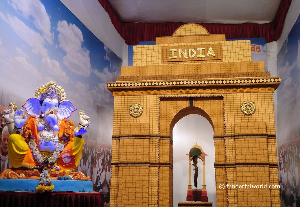 A salute to the bravehearts. India Gate made from biscuits. Ganesh Chaturthi, Pune, Maharashtra, India.