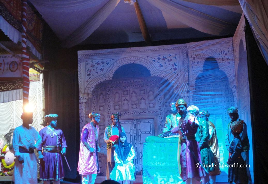 At some locations, stories of Shivaji’s bravery and of his skills at outsmarting the enemy were brought to life by talented actors on stage. Our favorite was the enactment of Shivaji’s daring escape from confinement in Agra. While the actors played their part confidently, the well-designed set and beautiful costumes (almost) transported us back in time. Junior identified every character, predicted every dialog, and even explained the scenes to us. Courtesy, Tales of Shivaji, from Amar Chitra Katha.