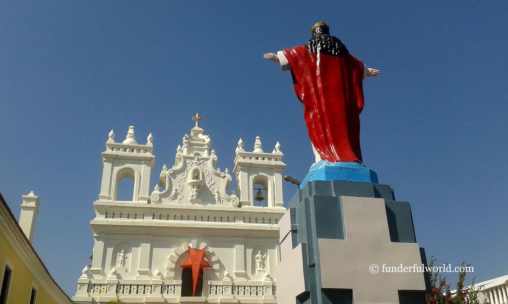 From atop a hillock, we gazed at the shimmering waters of the Arabian Sea below. To the left, the Terekhol (Tiracol) river (hidden from our view) proceeded to its rendezvous with the sea. And beyond the river, in the distance, lay a clean sandy stretch of beach. We squinted our eyes and thought we saw a couple of tourists ambling along in the sand. Behind us, the fresh white paint of St. Anthony’s Church almost shone in the bright sunlight.