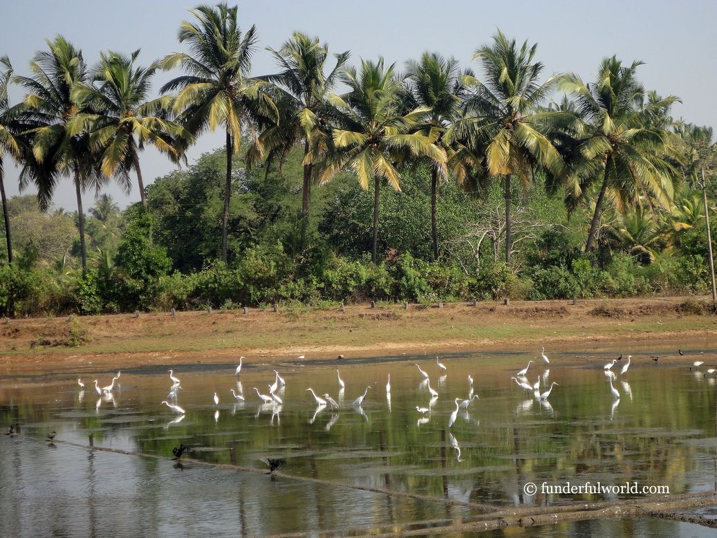 Egrets galore! The road to Fort Tiracol. Sindhudurg, Maharashtra.